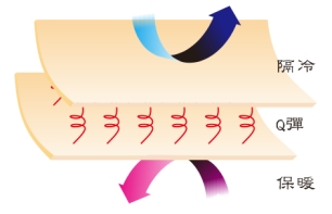 然羽絨相比,可表現相似的保暖特性,但螺旋中空纖維洗滌後可利用烘衣機迅速乾燥,並恢復到原來的膨鬆保暖型 |